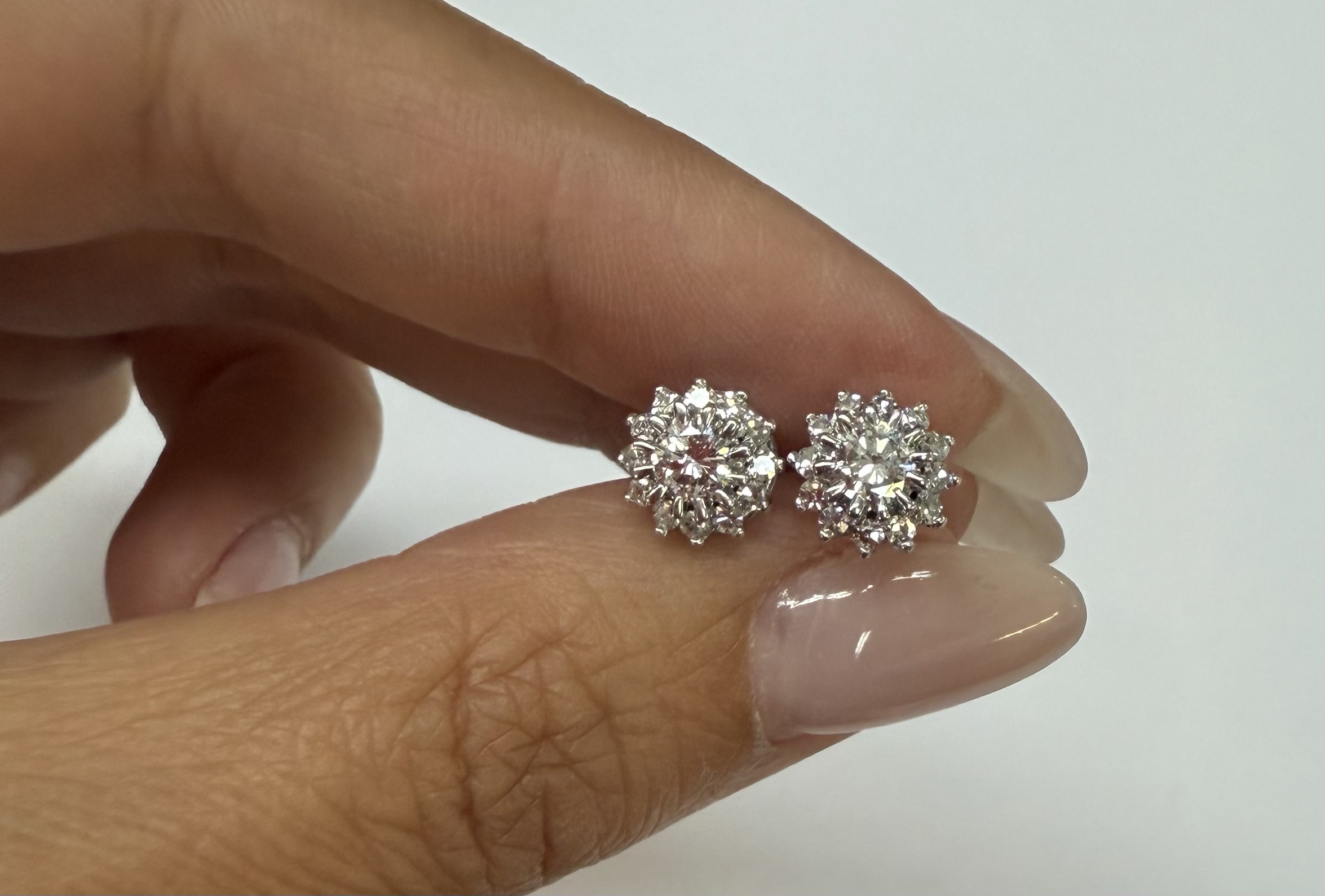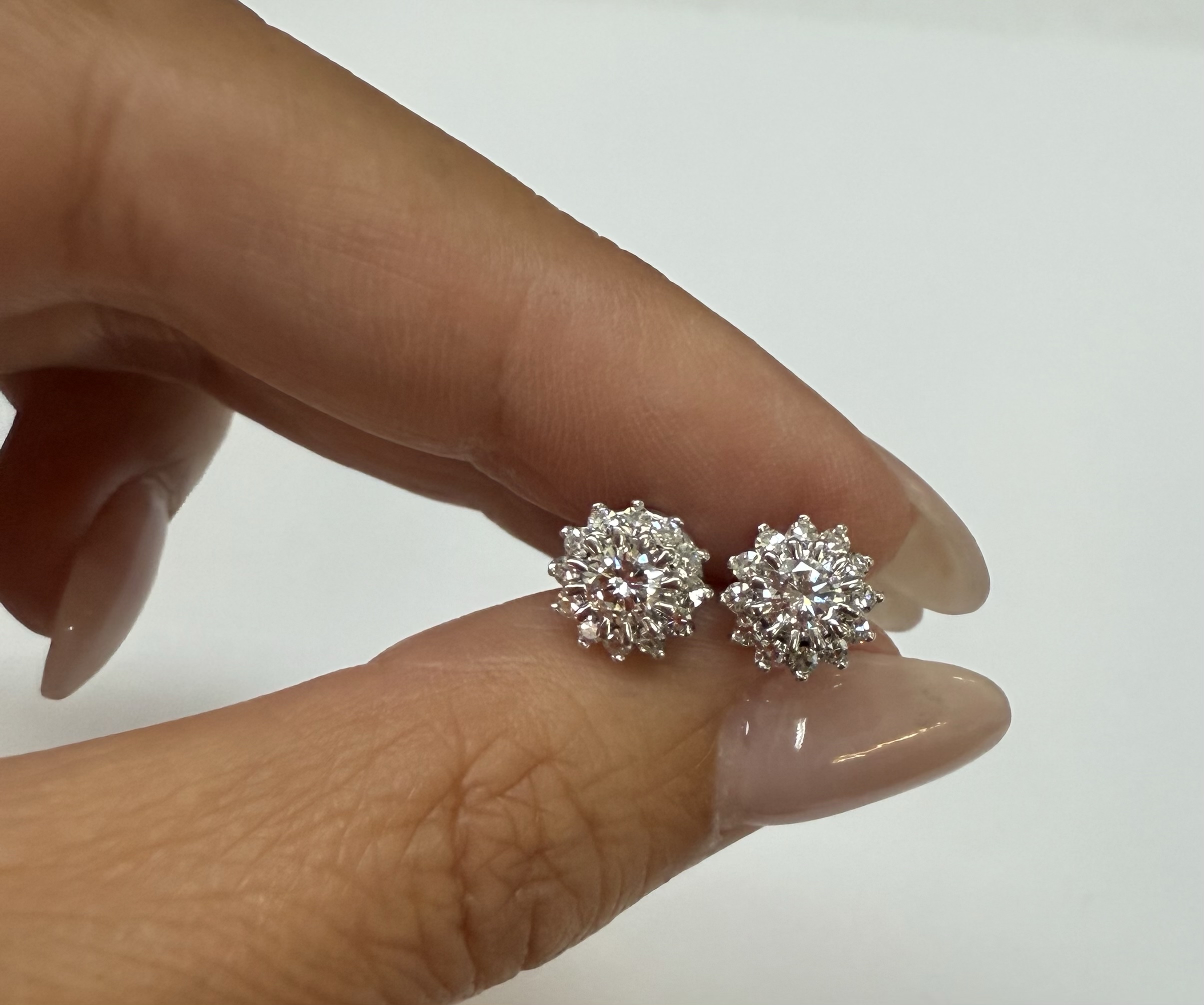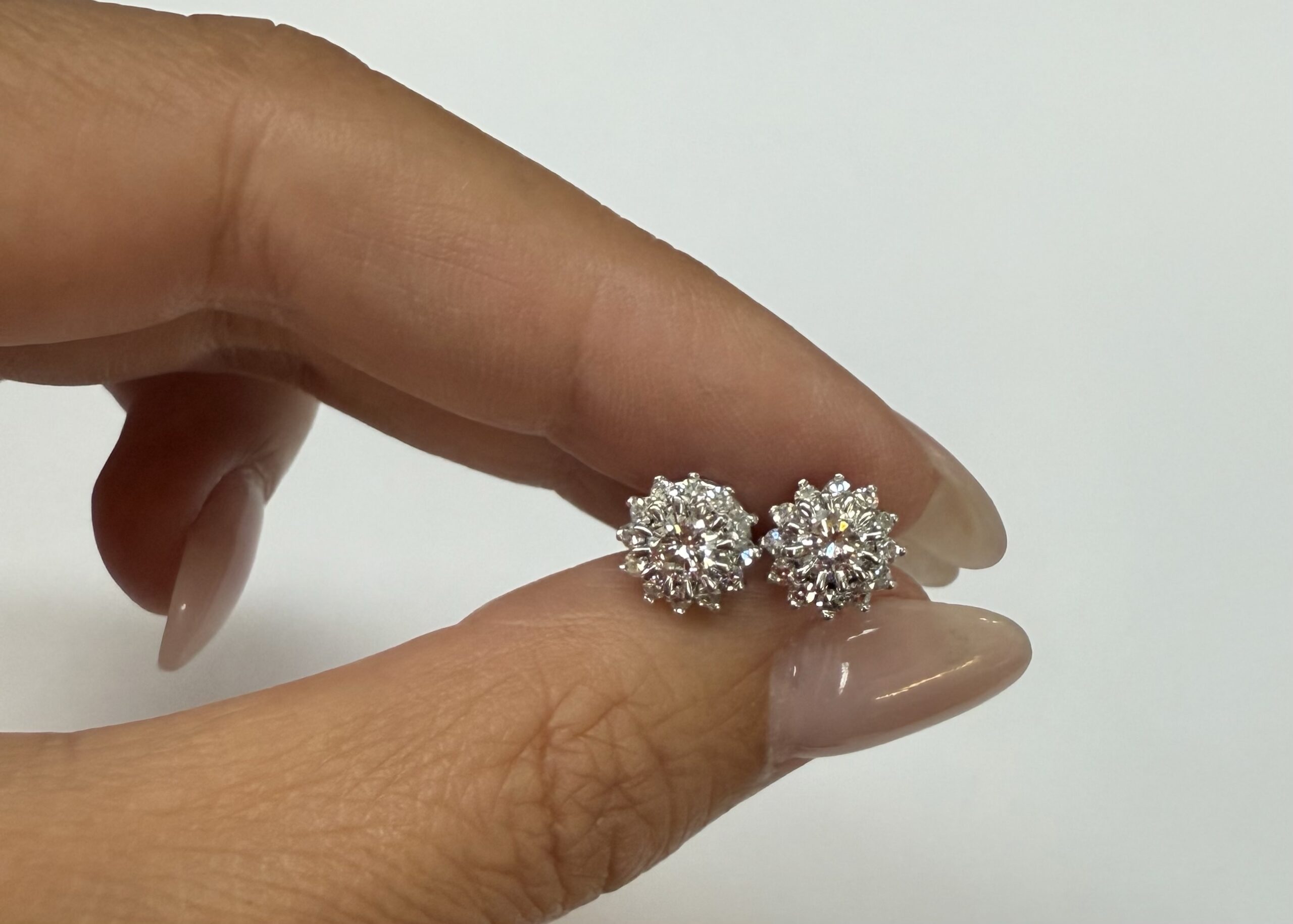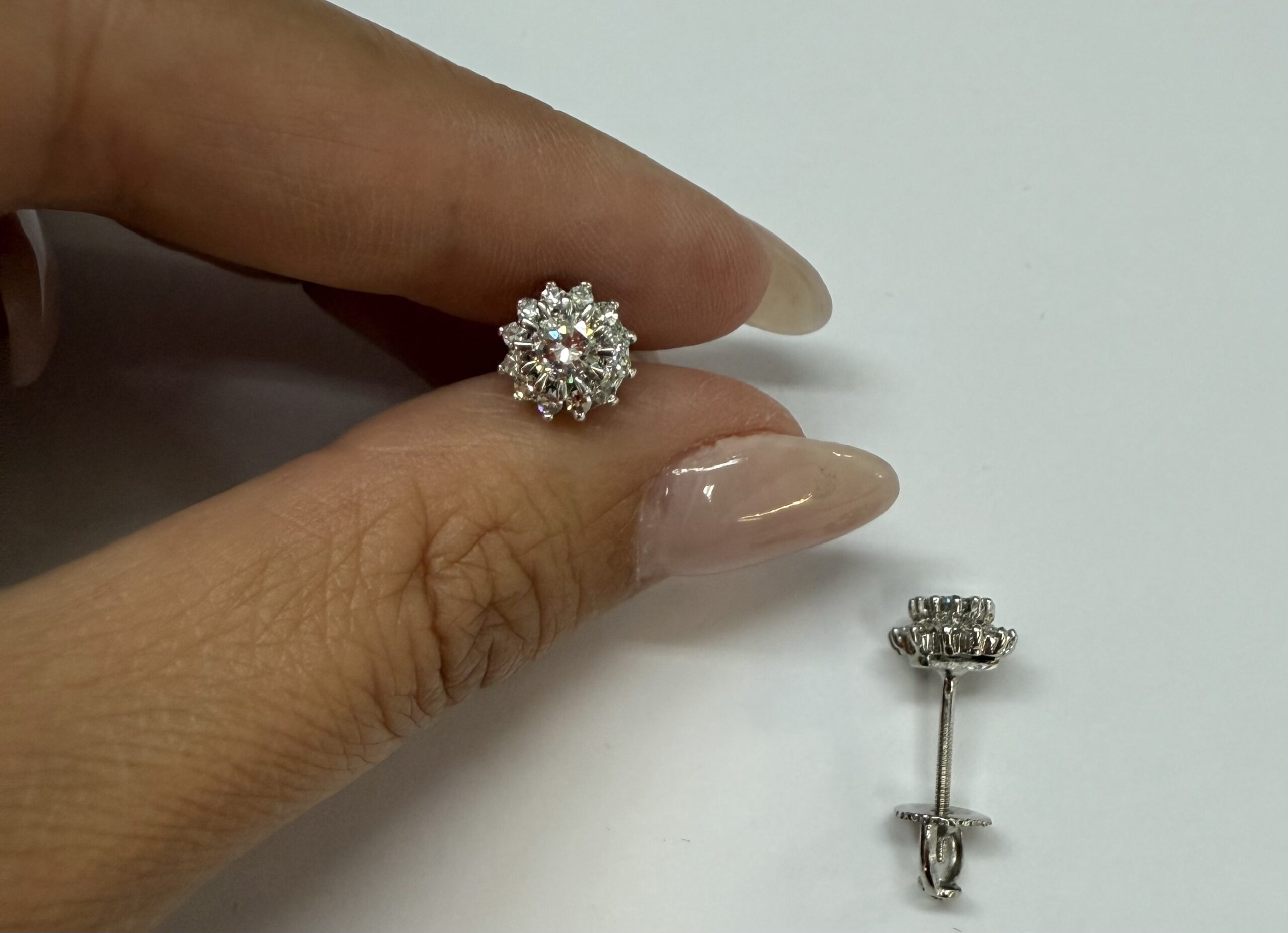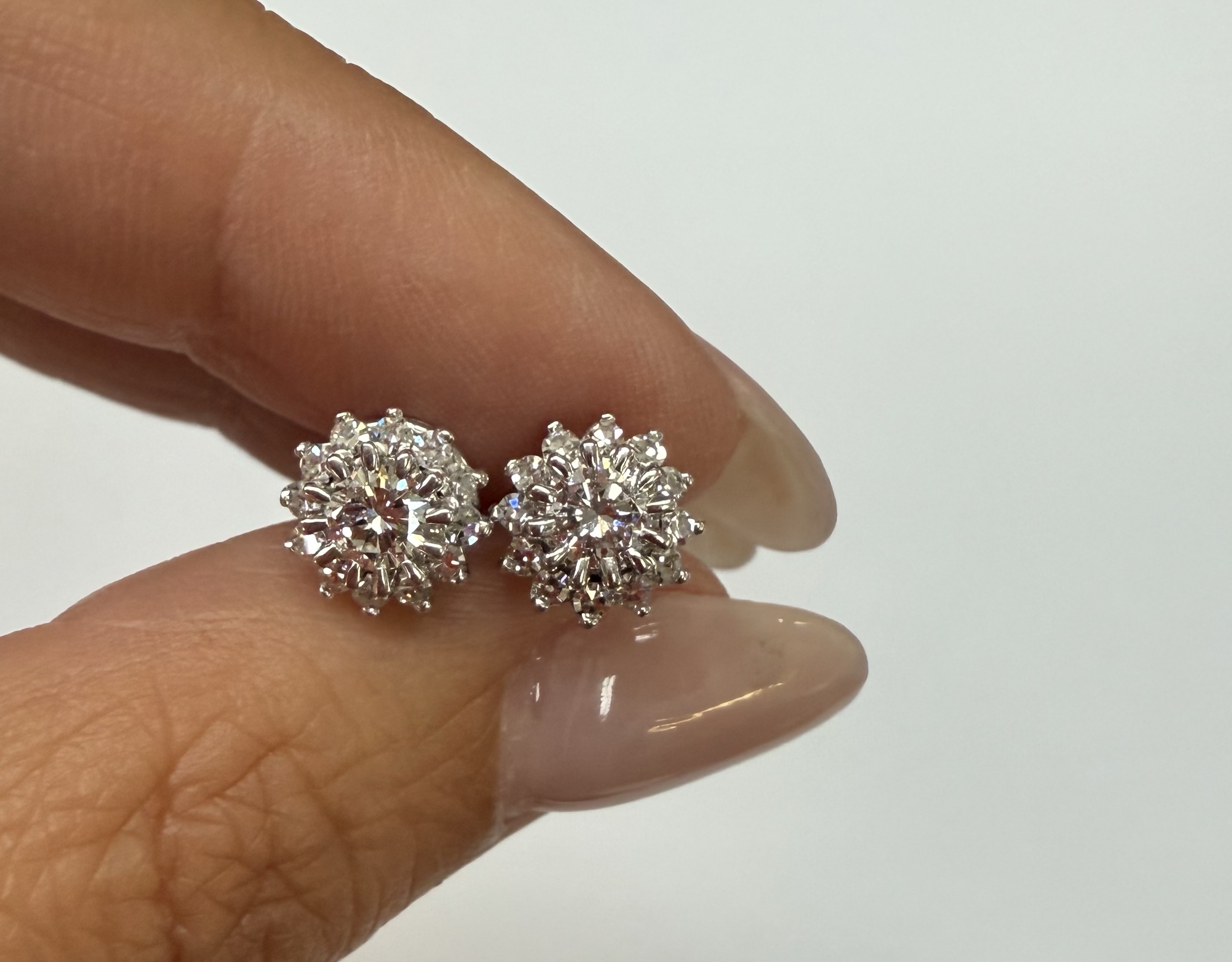 Vintage one-of-a-kind 18k white gold genuine 3/4 cttw Round Brilliant Cut diamond cluster style screw back stud earrings. The diamonds average