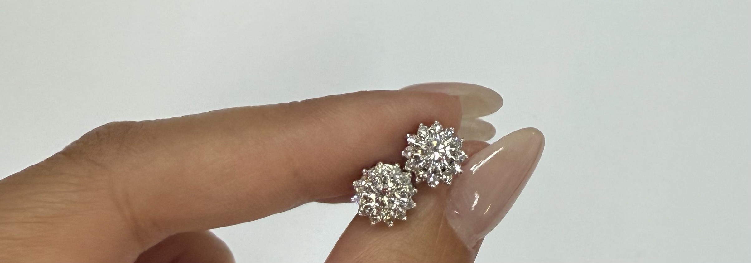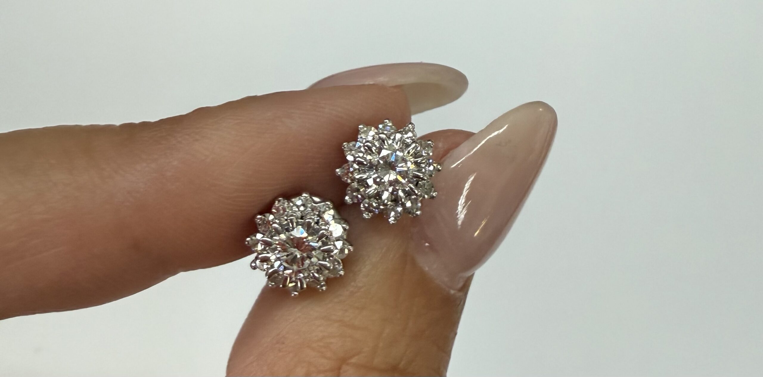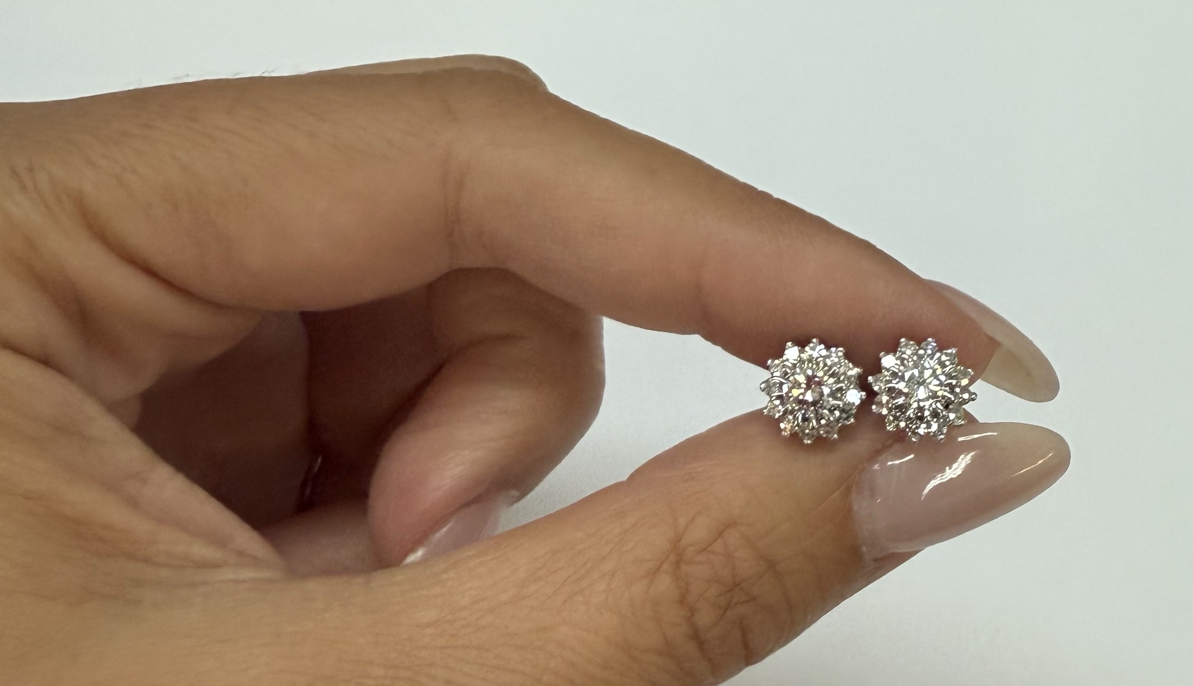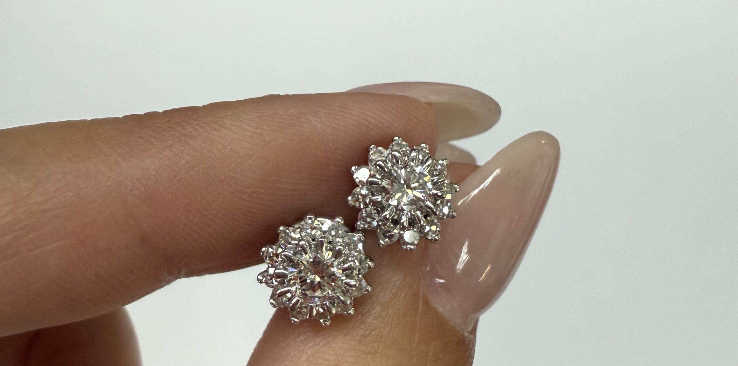 Vintage one-of-a-kind 18k white gold genuine 3/4 cttw Round Brilliant Cut diamond cluster style screw back stud earrings. The diamonds average